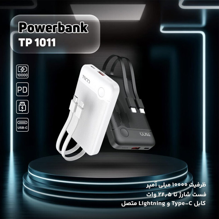 مجهز به 1 عدد کابل تایپ سی و 1 عدد کابل لایتنینگ متصل به بدنه با عملکرد خروجی و دو درگاه خروجی USB و Type-C(مشترک) با حداکثر شدت جریان 3 آمپر در 5 ولت