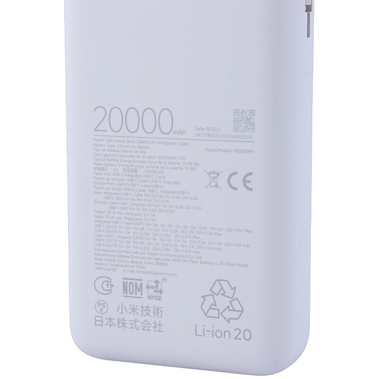 تامین انرژی از طریق باتری داخلی از نوع لیتیوم یونی با ظرفیت کلی 20000 میلی آمپر ساعت