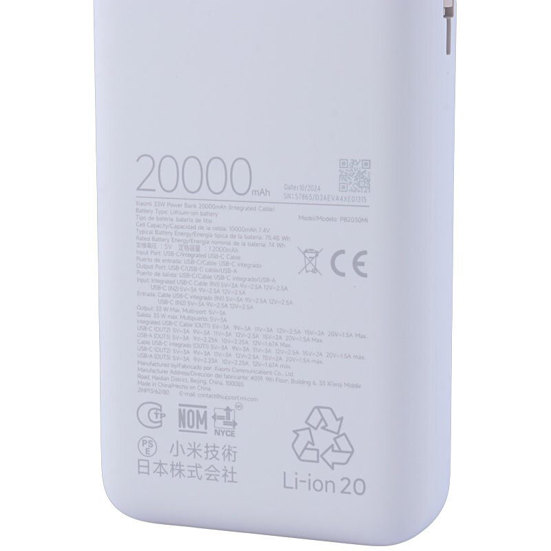 تامین انرژی از طریق باتری داخلی از نوع لیتیوم یونی با ظرفیت کلی 20000 میلی آمپر ساعت