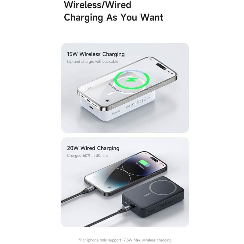 شارژر همراه وایرلس Mcdodo مدل MC-502 با ظرفیت 20000 میلی آمپر ساعت