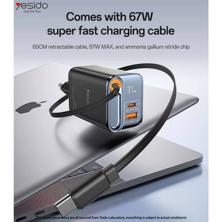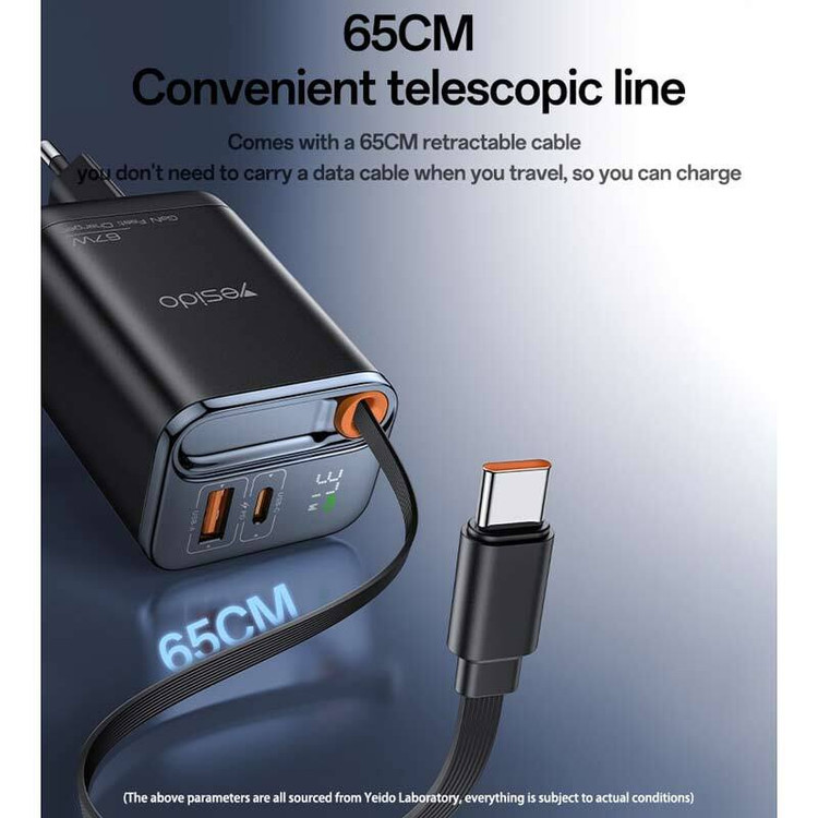 آداپتور شارژ Yesido مدل YC100 با توان خروجی 67 وات