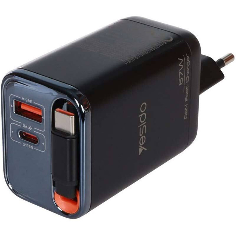 شارژر دیواری 67 وات یسیدو YC100 GaN QC PD 3.35A