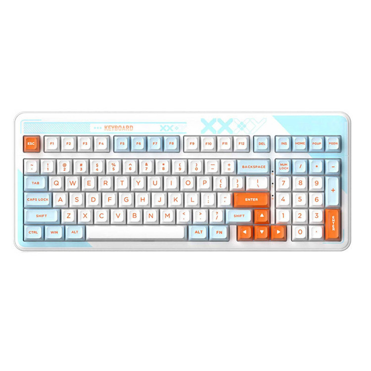 برخوردار از 104 کلید فیزیکی شامل کلید FN و...، دارای نشانگر LED و نور پس زمینه آبی رنگ به منظور ایجاد جلوه زیبا